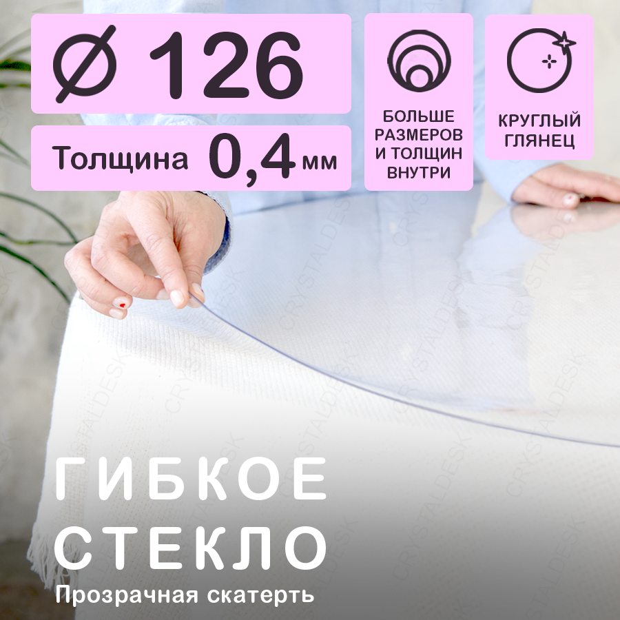 10 цен на Круглая скатерть 126 см (гибкое/мягкое стекло) CrystalDesk. Толщина 0.4 мм. ПВХ скатерть. Прозрачная. На круглый стол.