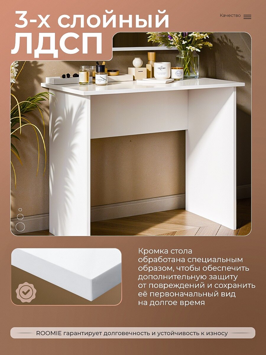 Стол письменный компьютерный ROOMIE, без ящиков, белый, для школьника информация: