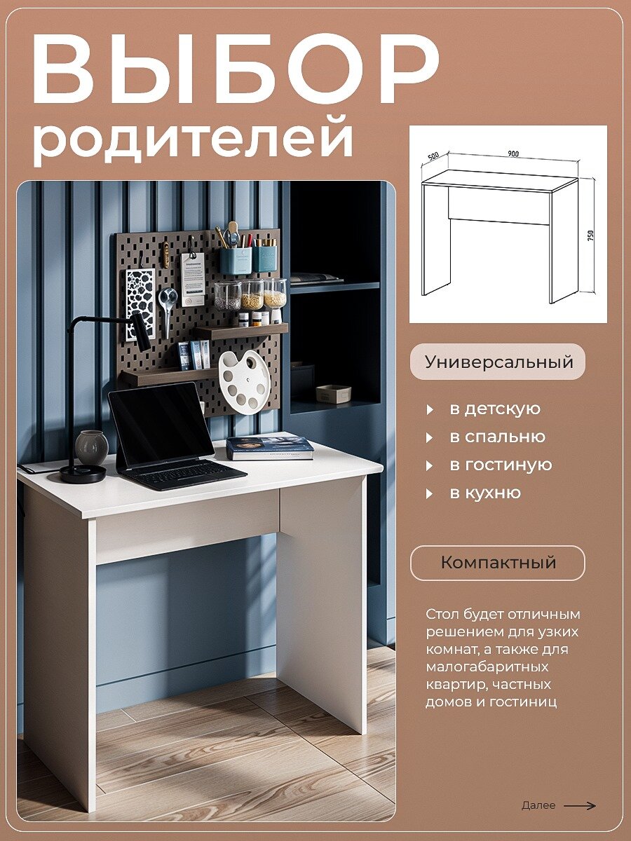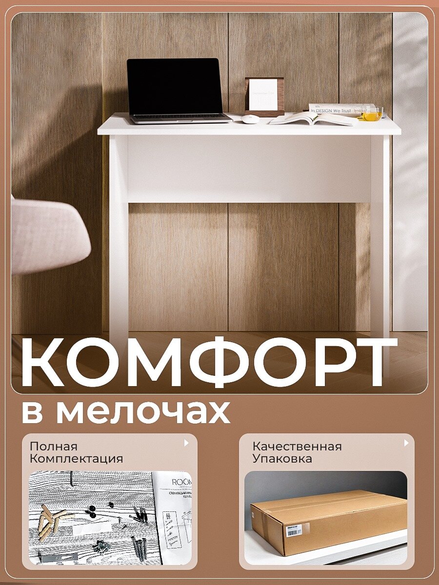 Отзывы на Стол письменный компьютерный ROOMIE, без ящиков, белый, для школьника