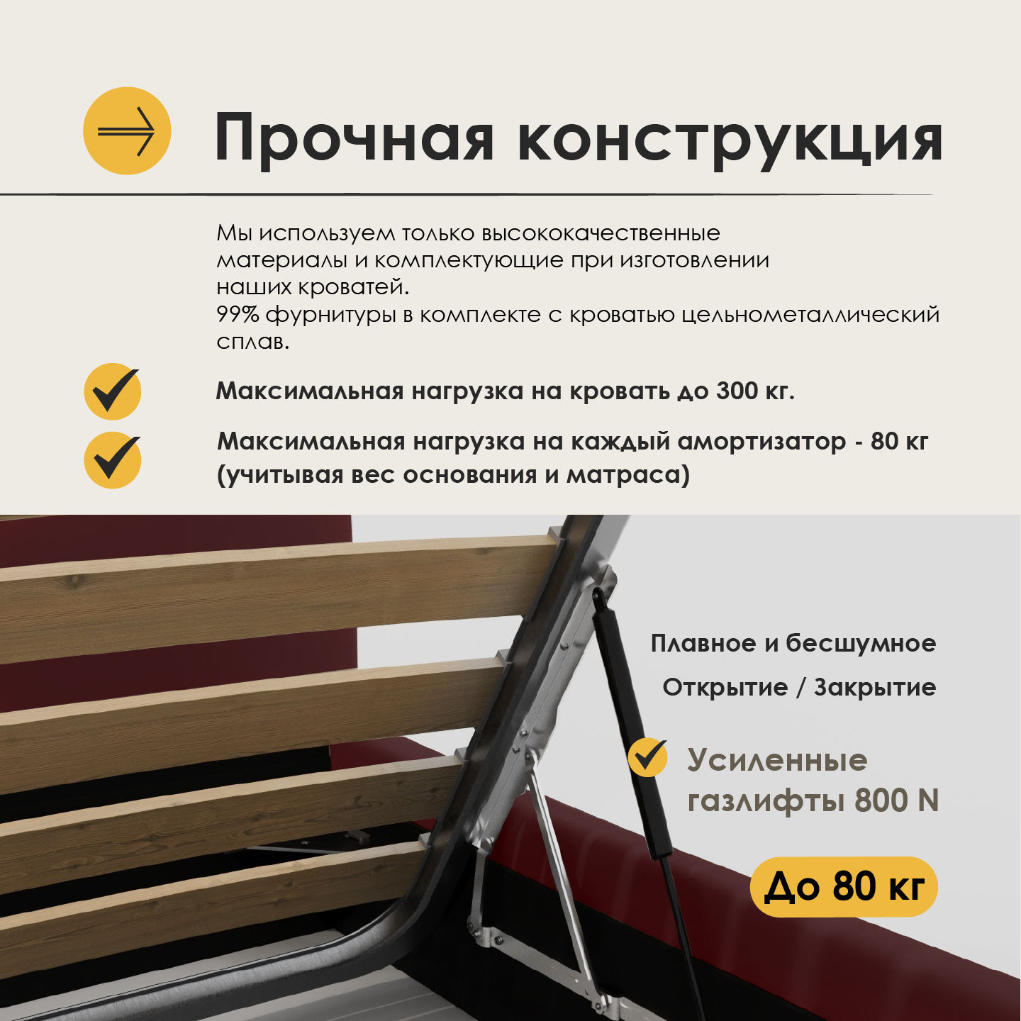 | Особенности | мягкое изголовье, с изножьем, с подъемным механизмом |