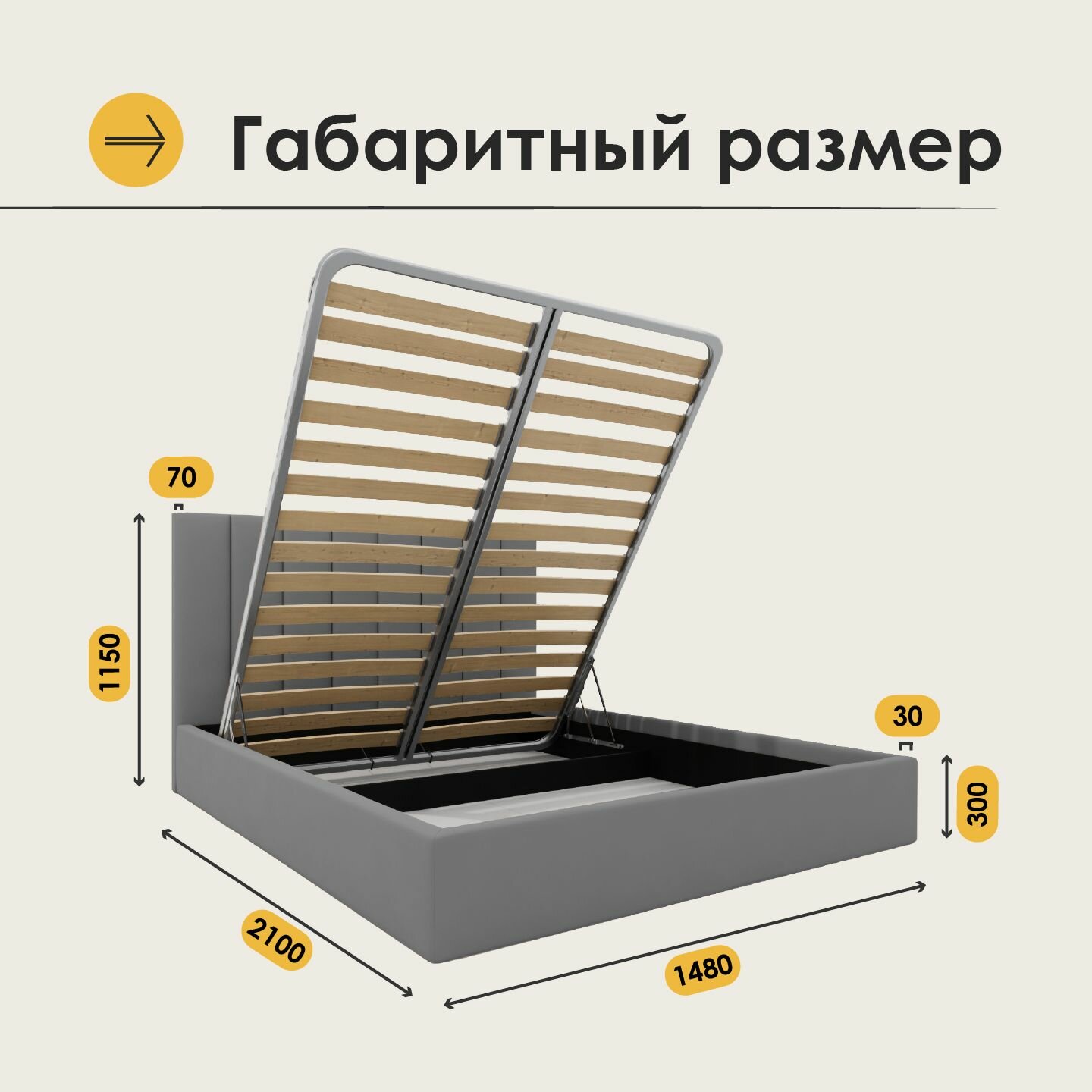 Кровать 140х200 двуспальная Маргарида, с матрасом Лекса, с подъёмным механизмом, с ящиками, с мягким изголовьем, темно-серая информация: