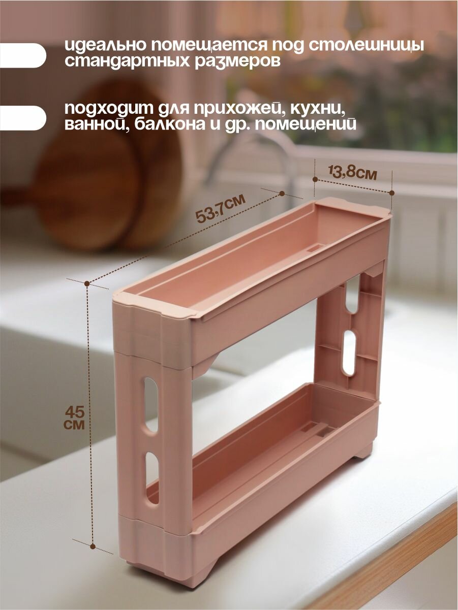 Стеллаж-этажерка Keeplex Regular на колесиках 2-х секционная 53,7х13,8х45 см, (бежевый топаз) 3837 информация: