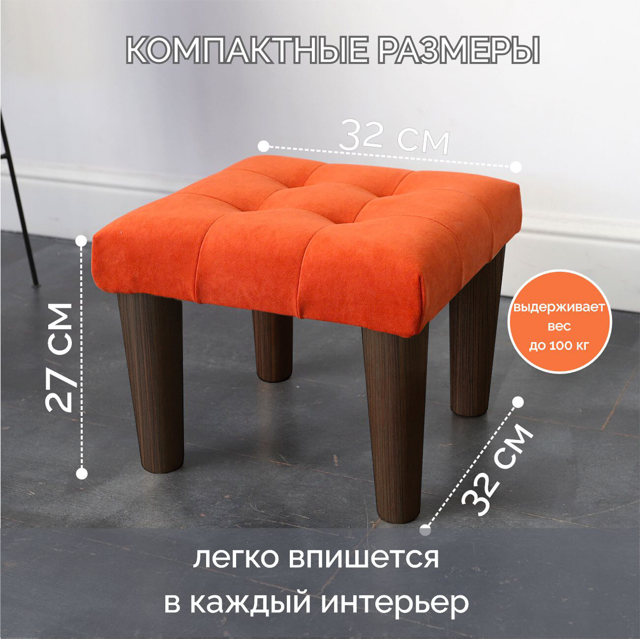 Отзывы на Табурет, стул для туалетного столика / Подставка для ног, Стульчик детский с мягкой сидушкой разборный, оранжевый, венге