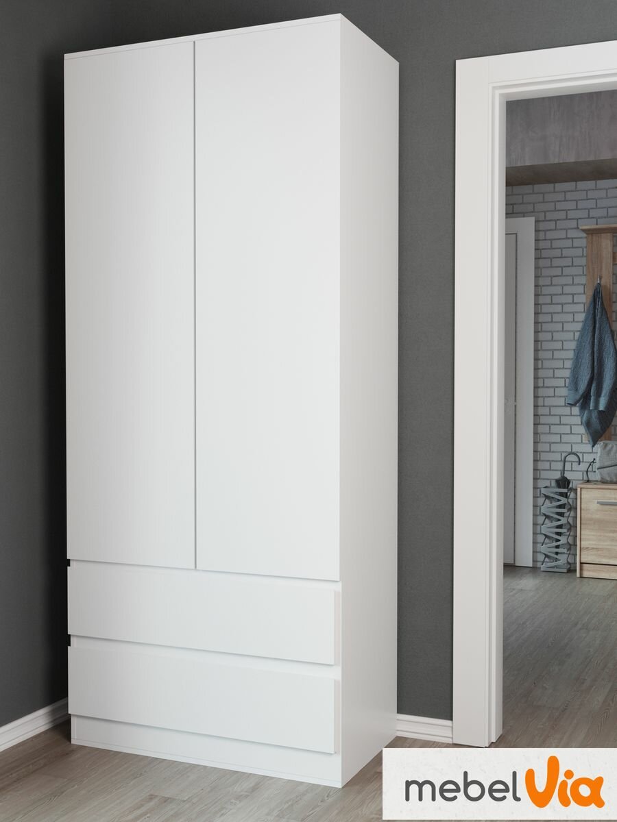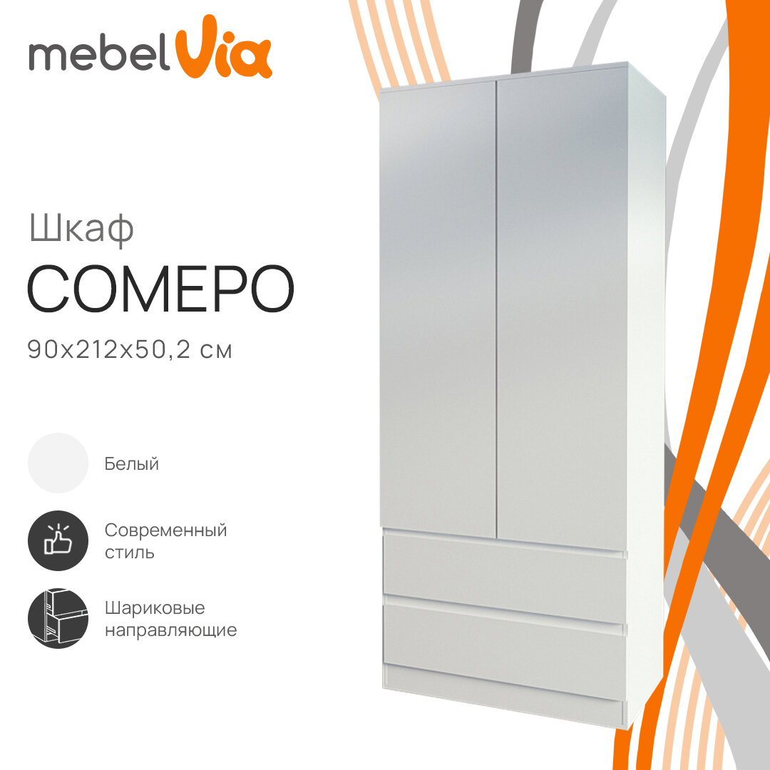 Отзывы на Шкаф 2-х дверный Somero, 2 выдвижных ящика, ЛДСП, белый, 90,2х50,2х212 см, MebelVia