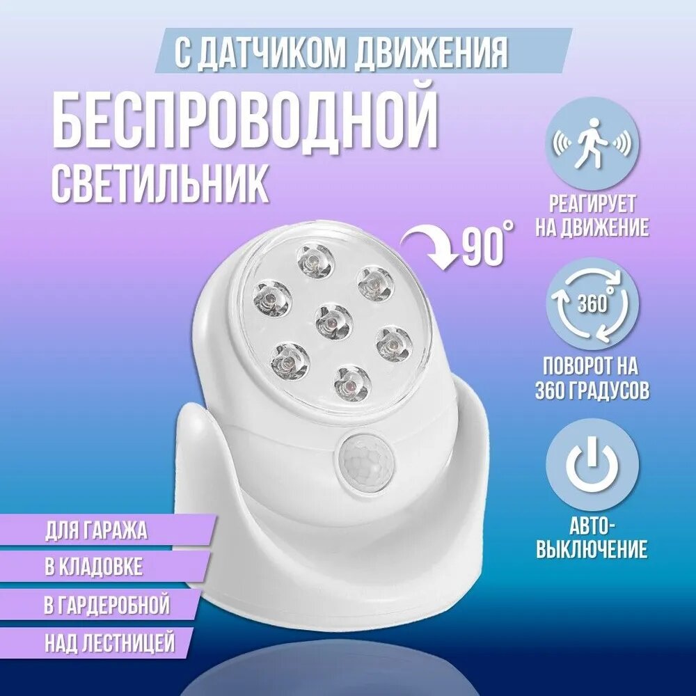 Светильник светодиодный, с датчиком движения, белый, на батарейках, беспроводной, IP44 информация: