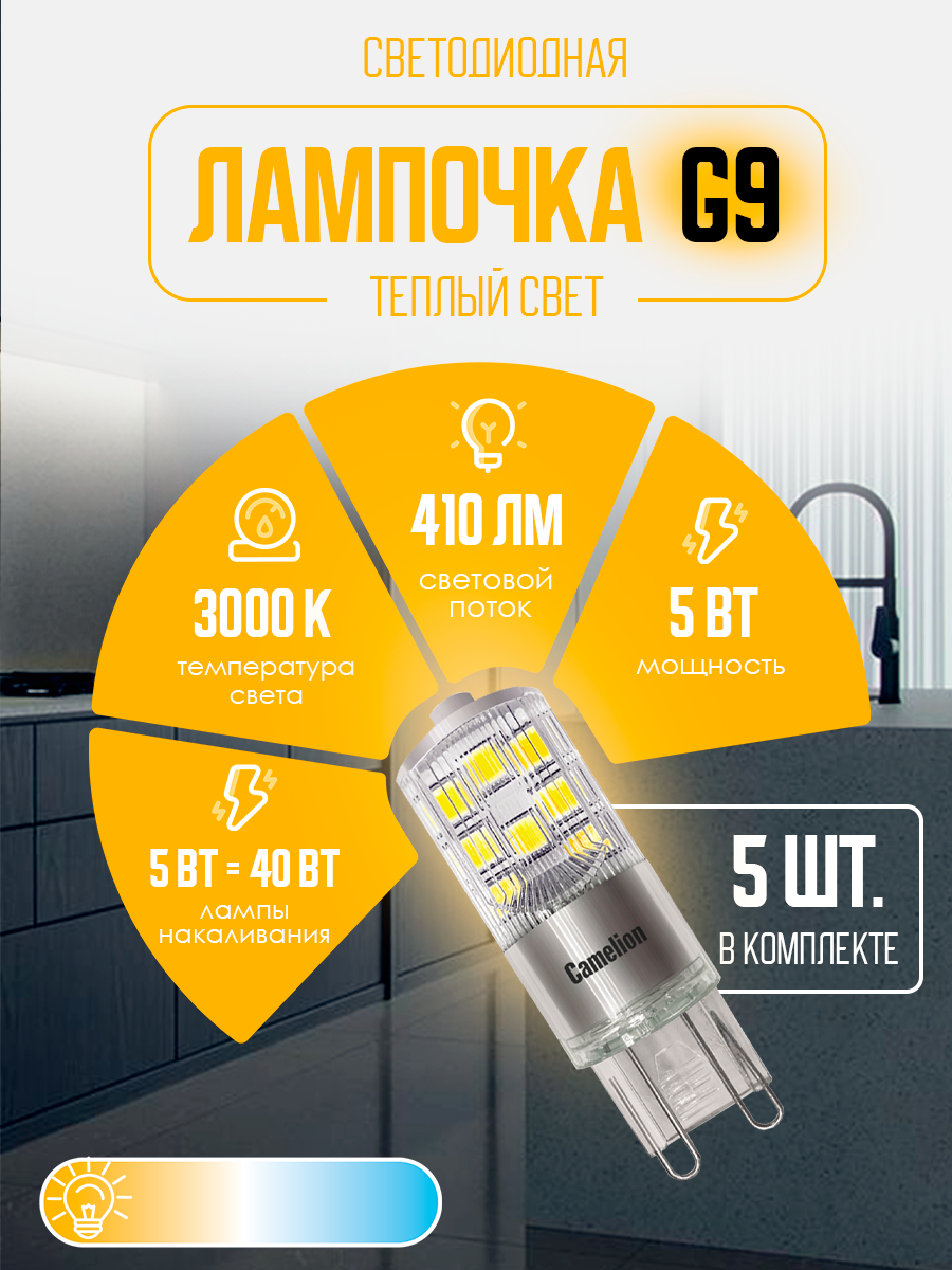 Отзывы на Лампочки светодиодные Camelion, LED5-NF, G9, теплый белый свет, 5Вт
