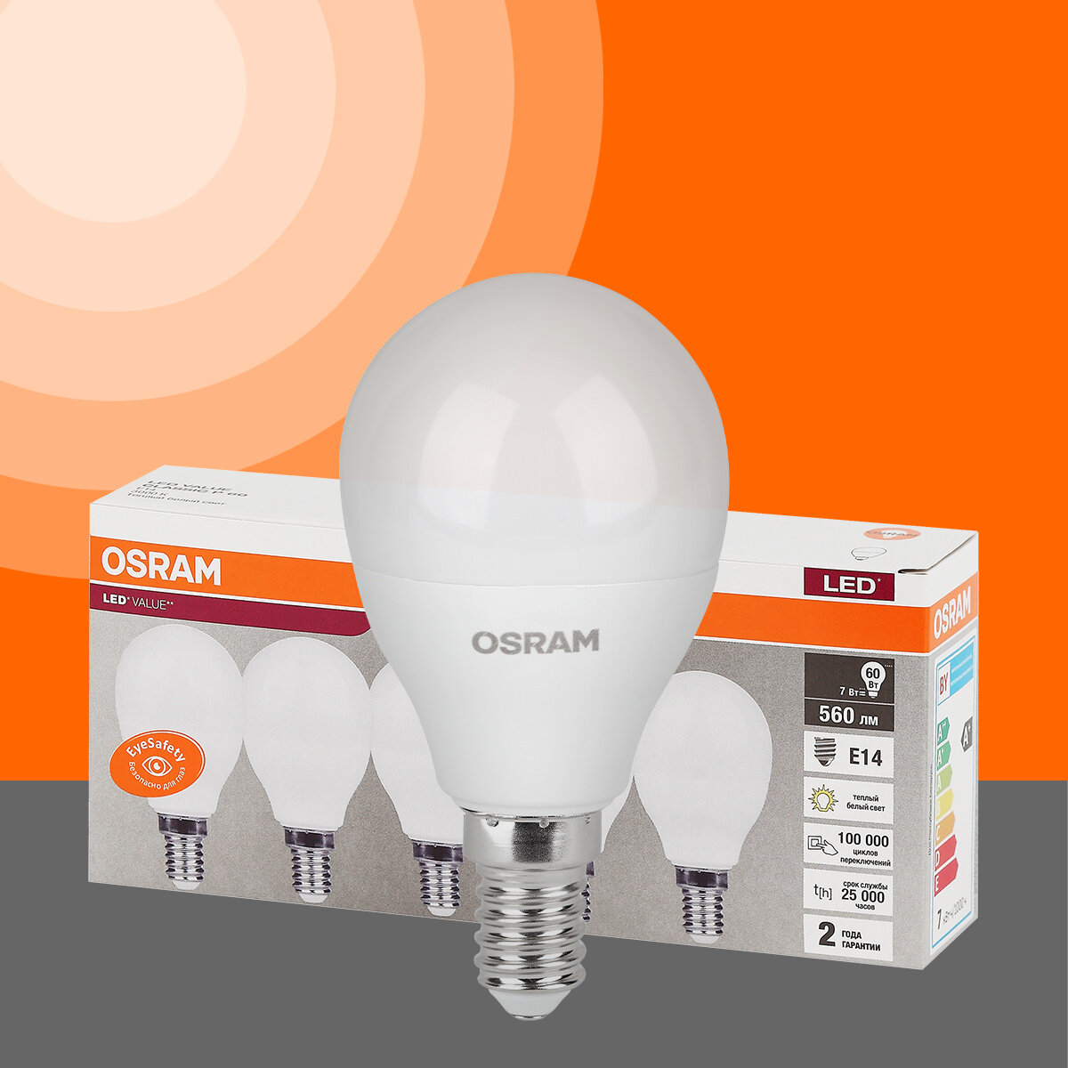 Отзывы на Лампа светодиодная Е14 OSRAM LED Value P, 560лм, 6.5Вт, 3000K теплый свет, 5 шт.
