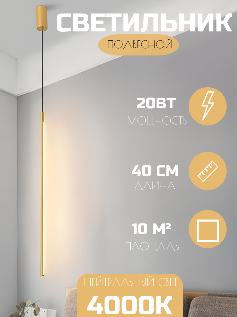 Отзывы на Современный светодиодный длинный трубчатый светильник Подвесной светильник 40 см Золото