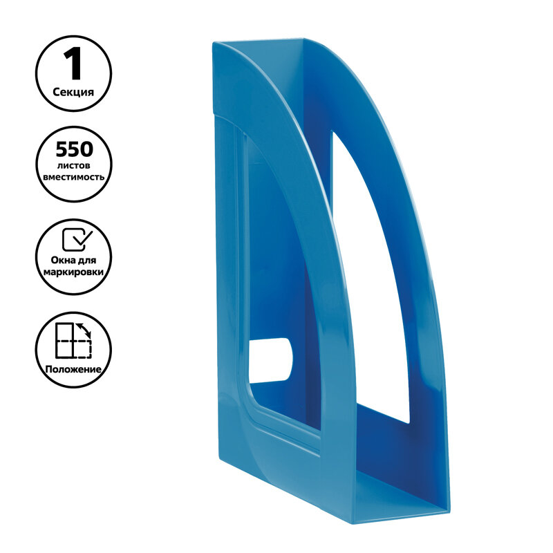 Лоток для бумаг вертикальный СТАММ "Респект", голубой информация: