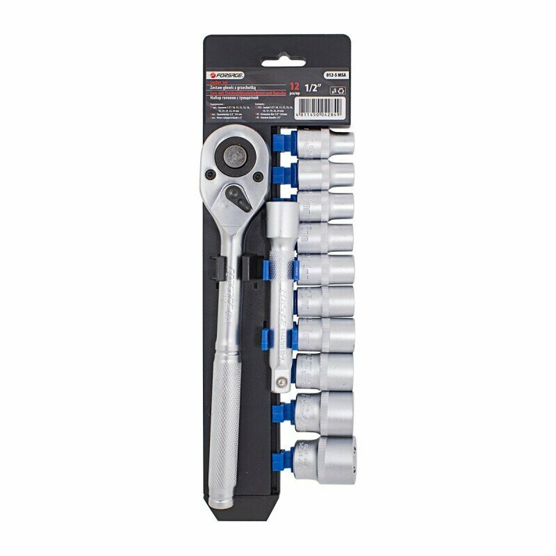 Набор головок с трещоткой и удлинителем 12пр.1/2''(6гр)(10-15,17,19,22,24мм),в пласт. держателе Forsage F-012-5 MSA