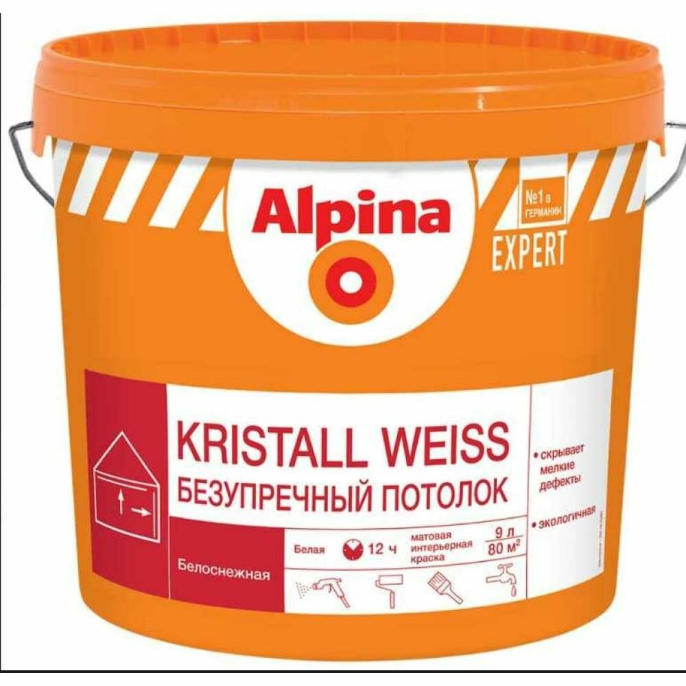 ALPINA EXPERT KRISTALL WEISS краска для внутренних работ белая, безупречный потолок (9л) 948104543