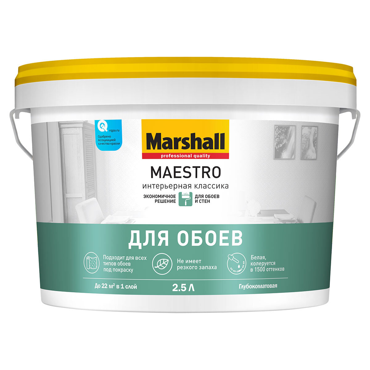 10 цен на Краска MARSHALL MAESTRO интерьерная классика для стен и потолков, глубокоматовая, база BW, белая 2,5л