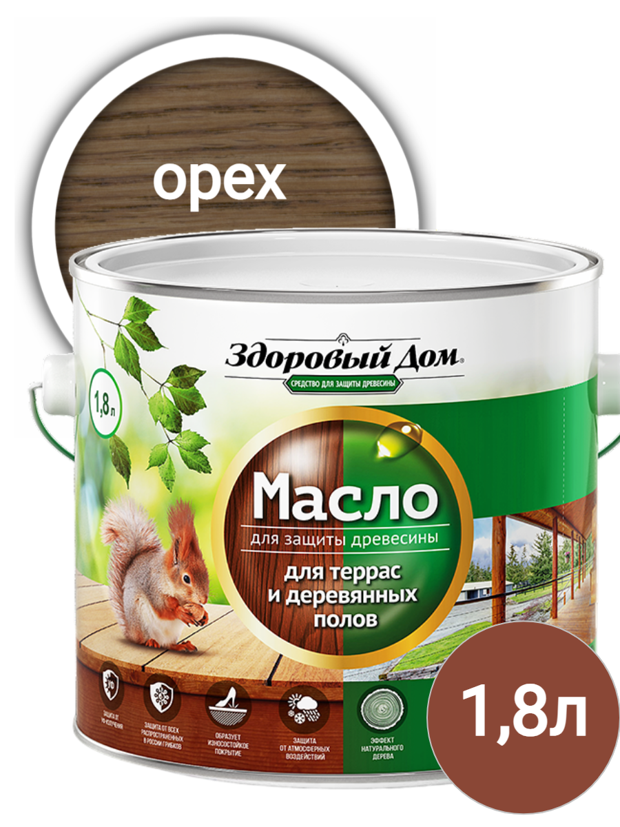 Масло для дерева , террас и деревянных полов Здоровый Дом орех 1,8 л информация: