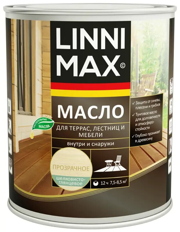 Масло для террас лестниц и мебели Linnimax цвет прозрачный 0.75 л информация: