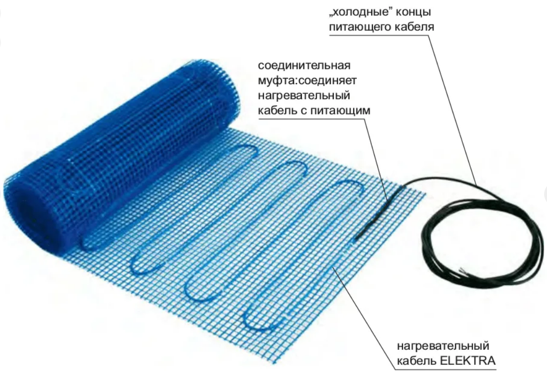 Теплый пол электрический под плитку Ридан TF-150 0,5 м2 нагревательный мат тонкий на самоклеящейся сетке