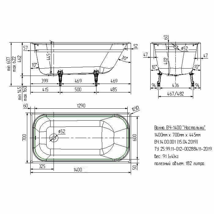 | Дополнительная информация | Вес брутто, кг | 91;Глубина, см | 44,5;Встроенное сиденье | нет;Диаметр слива, см | 5.2;Для сифона диаметром, см | 5.2;Дополнительная информация | регулируемая высота ножек 5 см;Подлокотники | нет;Размер_ванны, см | 140x70;Расположение перелива | стандартное;Стиль | современный;Страна | Россия;Толщина листа, см | 0,5;Экран | установка не предусмотрена; |
