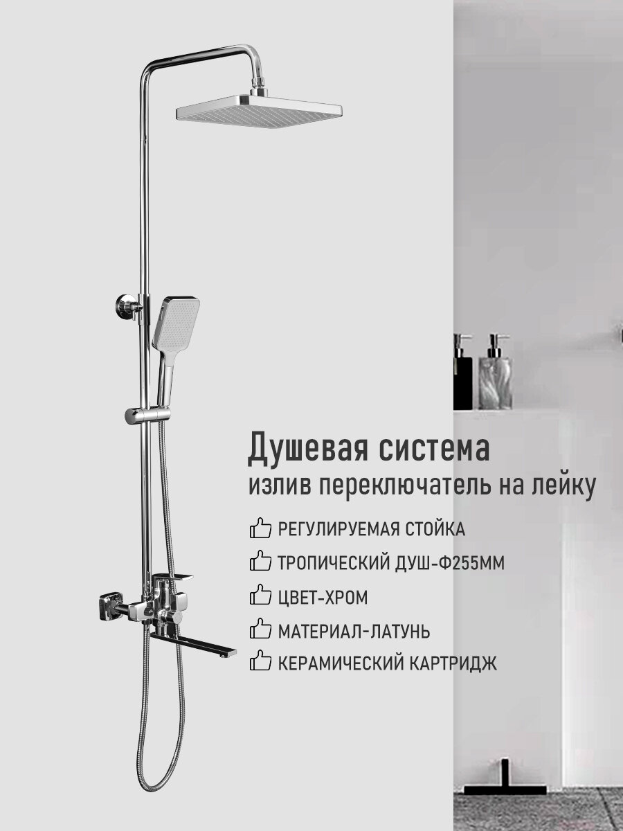 Душевая система душевая стойка с тропическим душем Frap хром информация:
