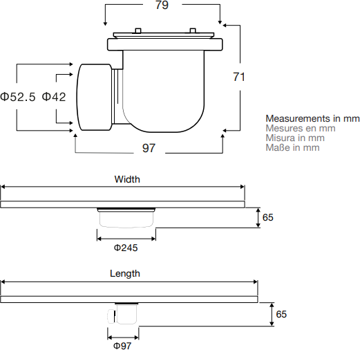 ANI ТА1112, Трап горизонтальный с выпуском 110 мм, нерегулируемый, с решеткой из нержавеющей стали 15*15см