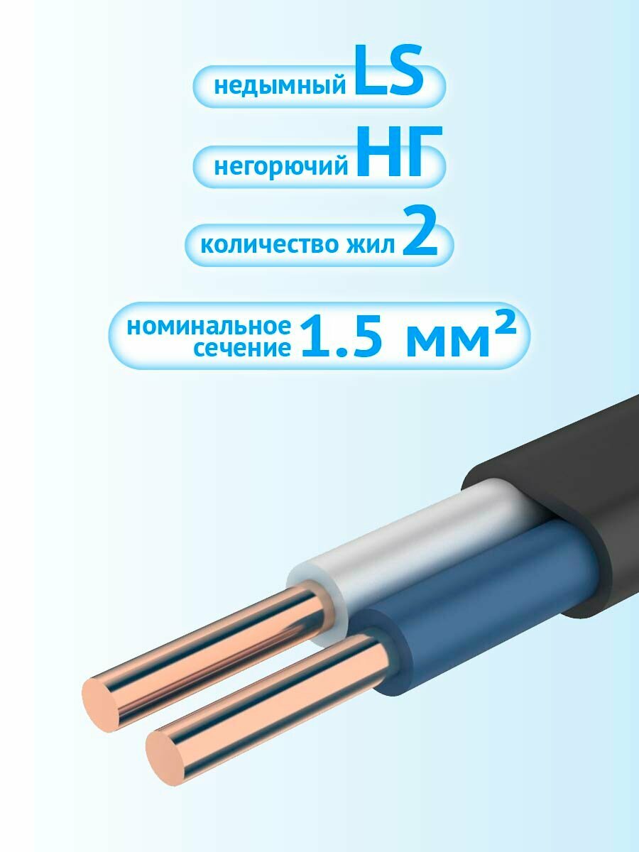 Кабель ВВГнг-LS, ВВГнг(А)-LS 2x1.5 ГОСТ бухта 20 м 1 375 ₽