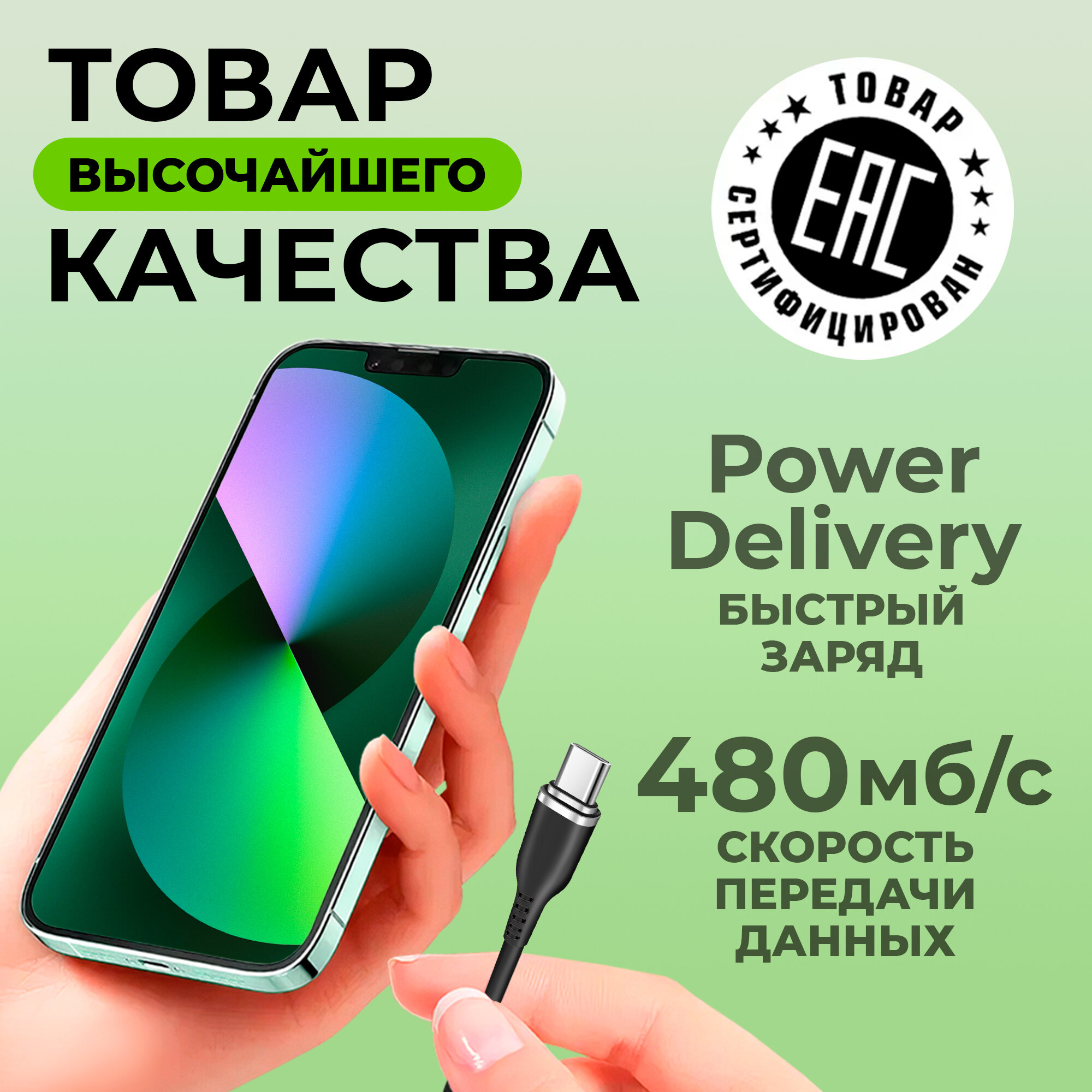 Кабель для зарядки и передачи данных USB Type-C - Lightning "WALKER" C795 35W 3.3A, 1 м, мягкий силиконовый провод переходник лайтинг для айфона, черный 498 ₽