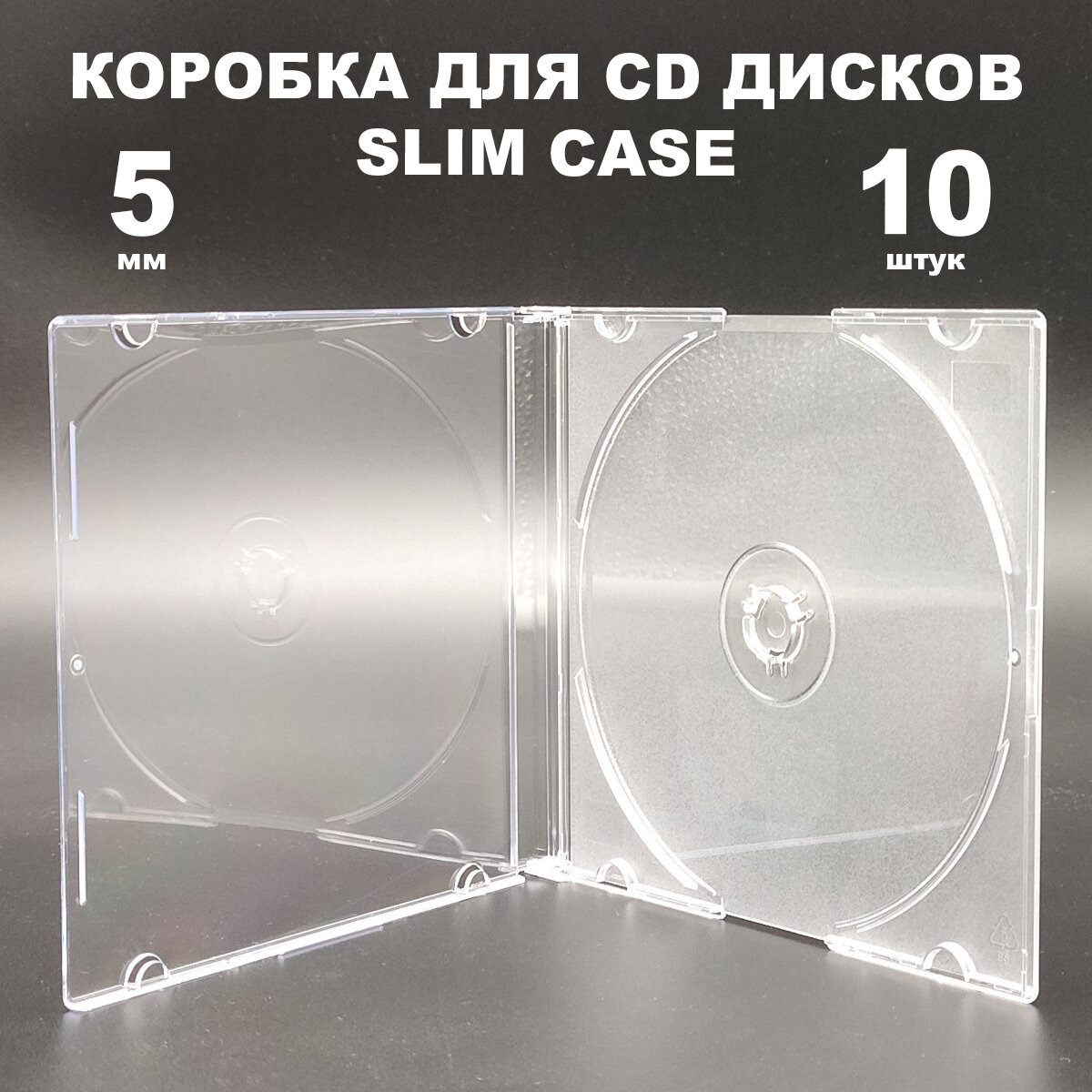 10 цен на Коробка CD Slim 1 диск, 5мм, 10 штук прозрачный / Бокс CD Jewel 1 диск