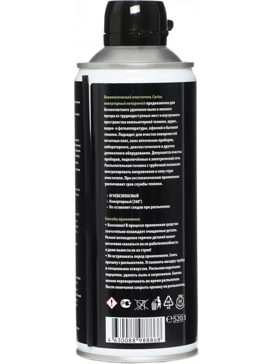 | Дополнительная информация | Очиститель высокого давления ИНВЕРТОРНЫЙ НЕГОРЮЧИЙ предназначен для бесконтактного удаления пыли и мелкого мусора из труднодоступных мест и внутреннего пространства компьютерной техники, аудио-, вид |