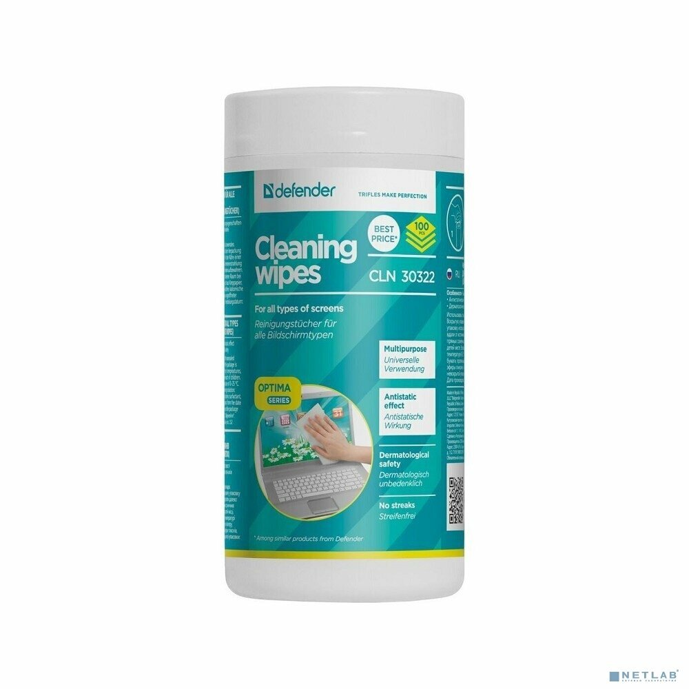 Салфетки для мониторов всех типов DEFENDER CLN30322, в тубе, 100 шт 30322