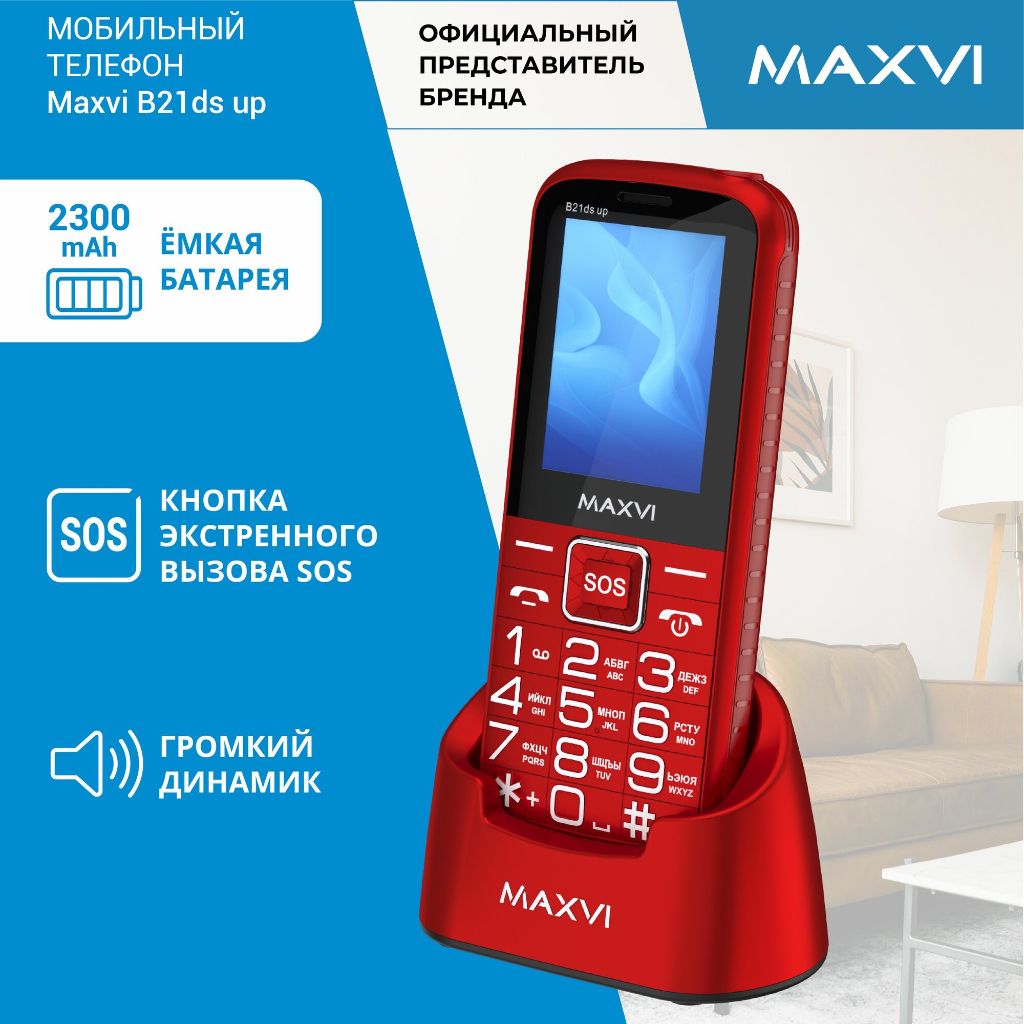 Телефон мобильный кнопочный Maxvi B21ds up красный информация:
