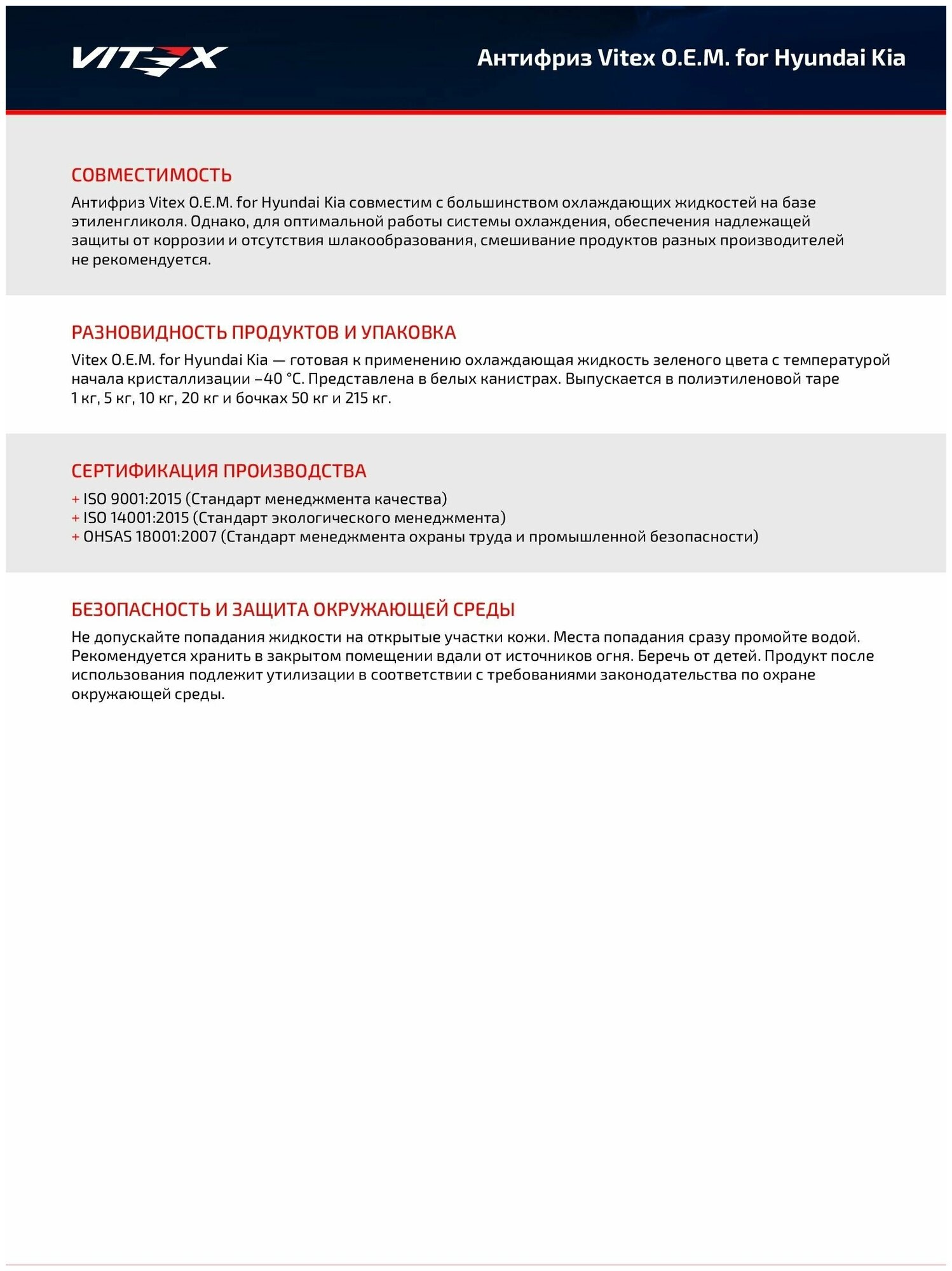 Vitex Antifreeze O.e.m. For Hyundai / Kia 1Кг Vitex арт. V113201 информация:
