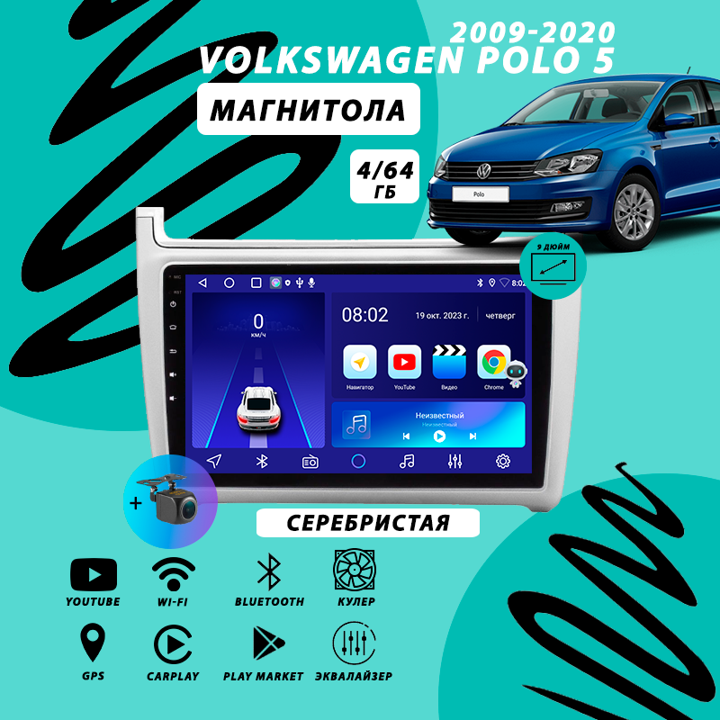 10 цен на Магнитола Volkswagen Polo (2009-2020) 4Гб+64Гб/серый матовый/Android/Carplay/кулер/Wi-Fi/Bluetooth