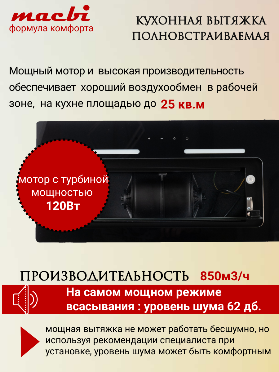 Вытяжка встраиваемая MACBI M-Box-G60R BLACK черное стекло 850 м3/ч +ПДУ (Модель 2024)