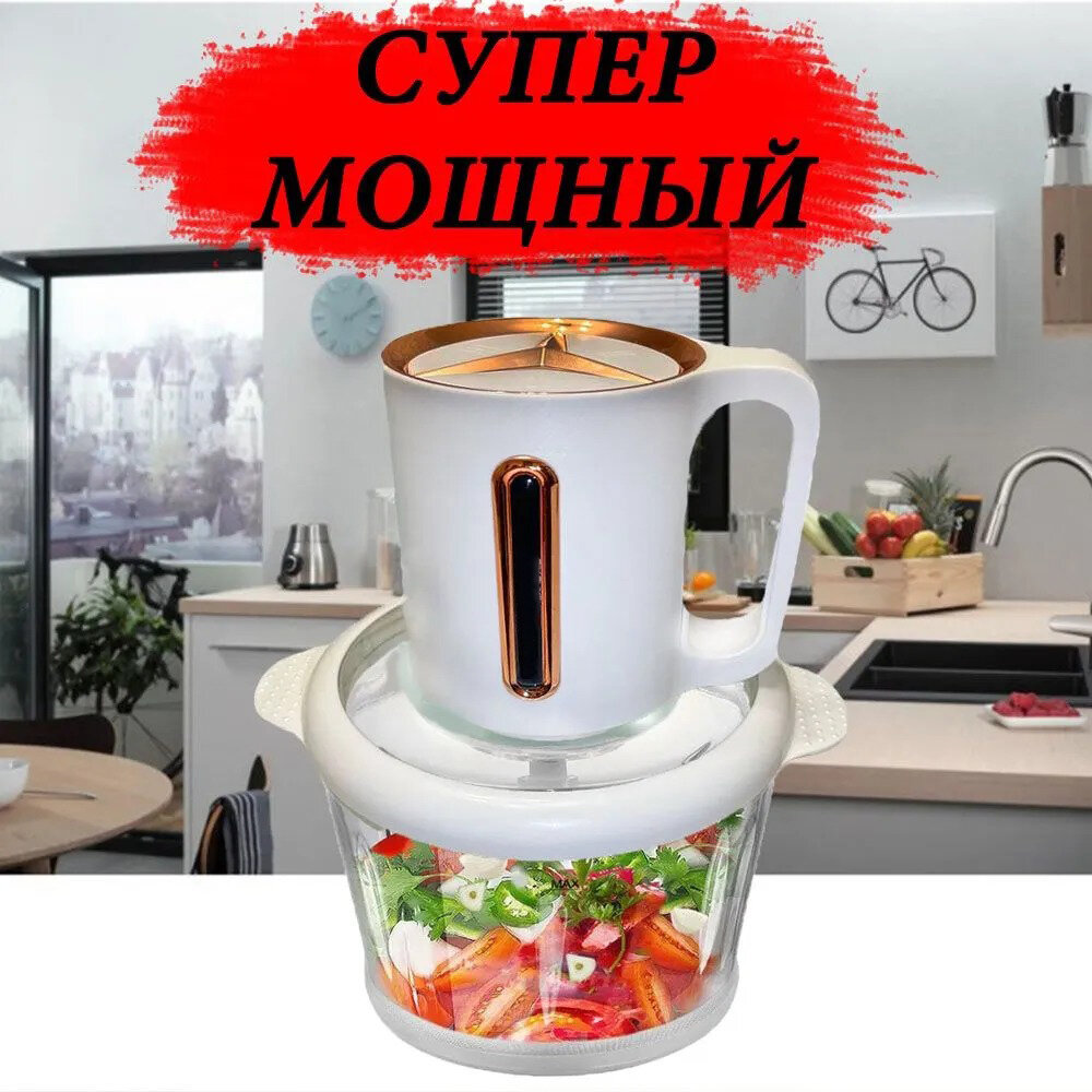 Измельчитель портативный/бортовой измельчитель для фарша, овощей/800 Вт, стеклянный кувшин 2 литра, работы, белый информация:
