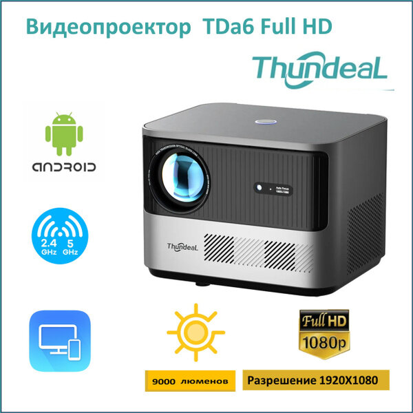 Проектор ThundeaL TDA6 Android, Full HD, 1080P, 2K 4K 5G WiFi 3D-проектор, 1LCD, черный информация: