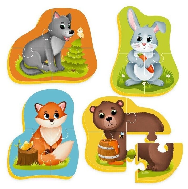 Пазлы для малышей "Лесные жители", 4 картинки, 13 элементов