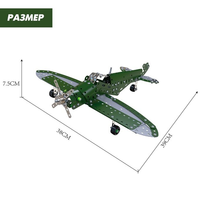 Конструктор металлический «Самолёт бомбардировщик», 258 деталей информация: