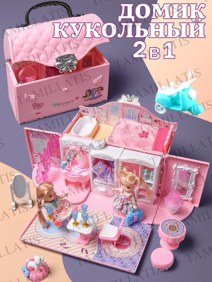 Отзывы на Кукольный домик Tamillatis, в чемодане, с мебелью и куклами, трансформер