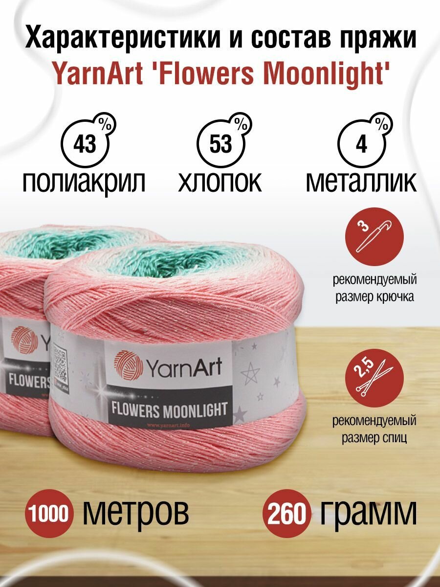 Пряжа для вязания YarnArt 'Flowers Moonlight' 260г, 1000м (хлопок, полиакрил, металлик) (3292 секционный), 2 мотка информация: