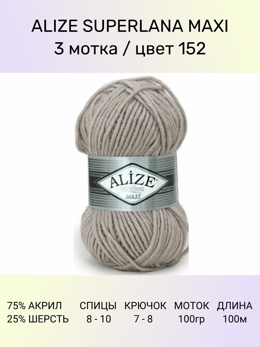 10 цен на Пряжа ALIZE Superlana maxi Ализе Суперлана Полушерсть: 152 (бежевый), 3 шт 100 м 100 г, 25% шерсть , 75% акрил