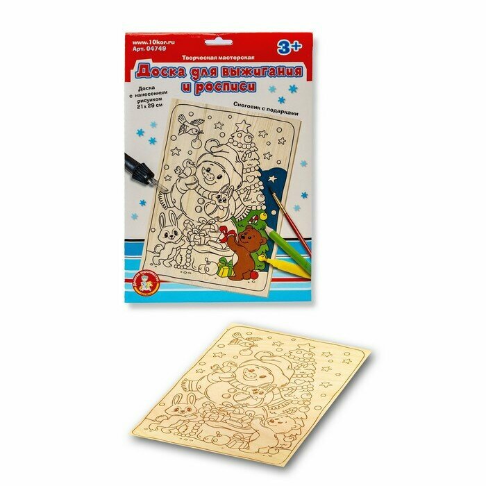 Десятое Королевство Выжигание. Доска для выжигания и росписи «Снеговик с подарком» информация: