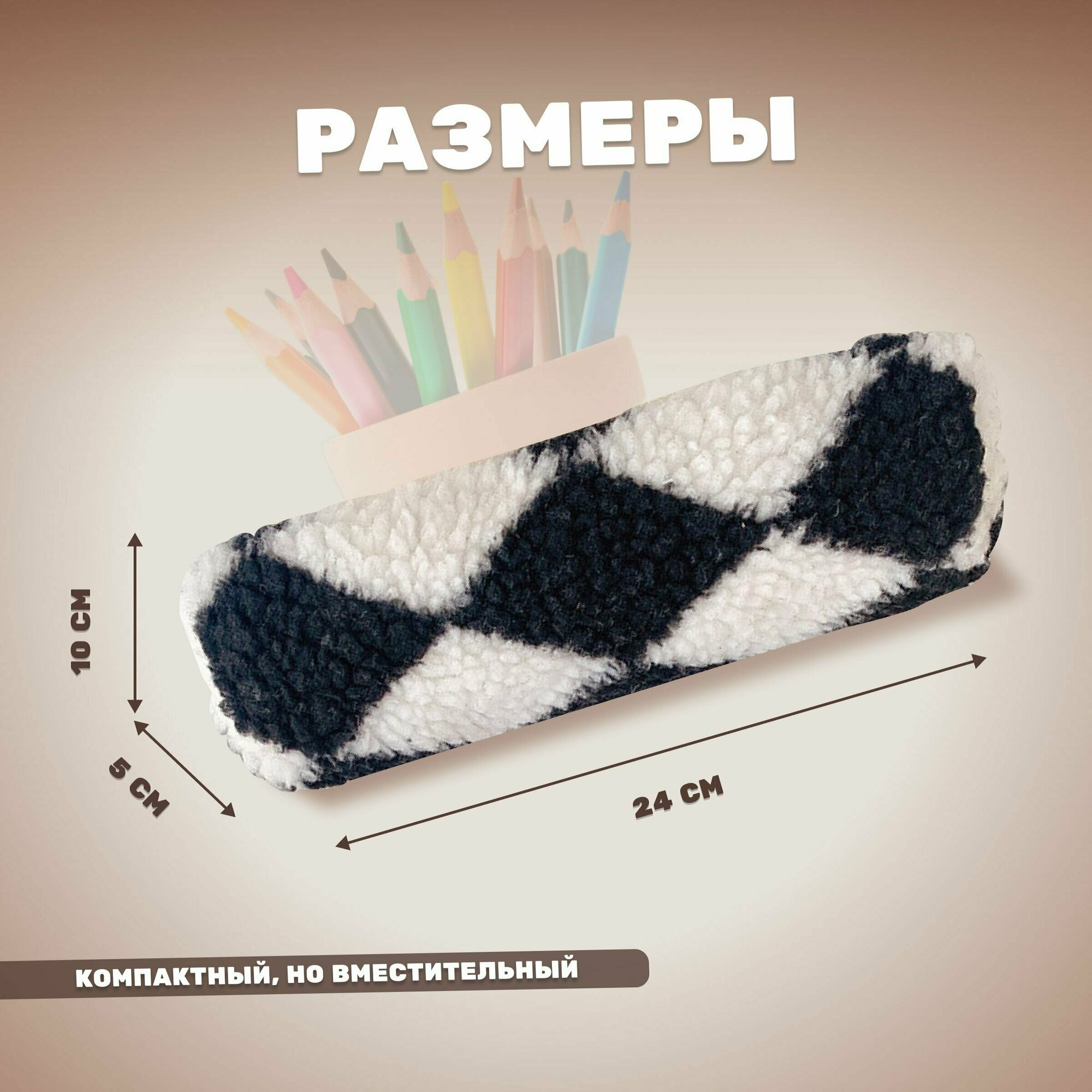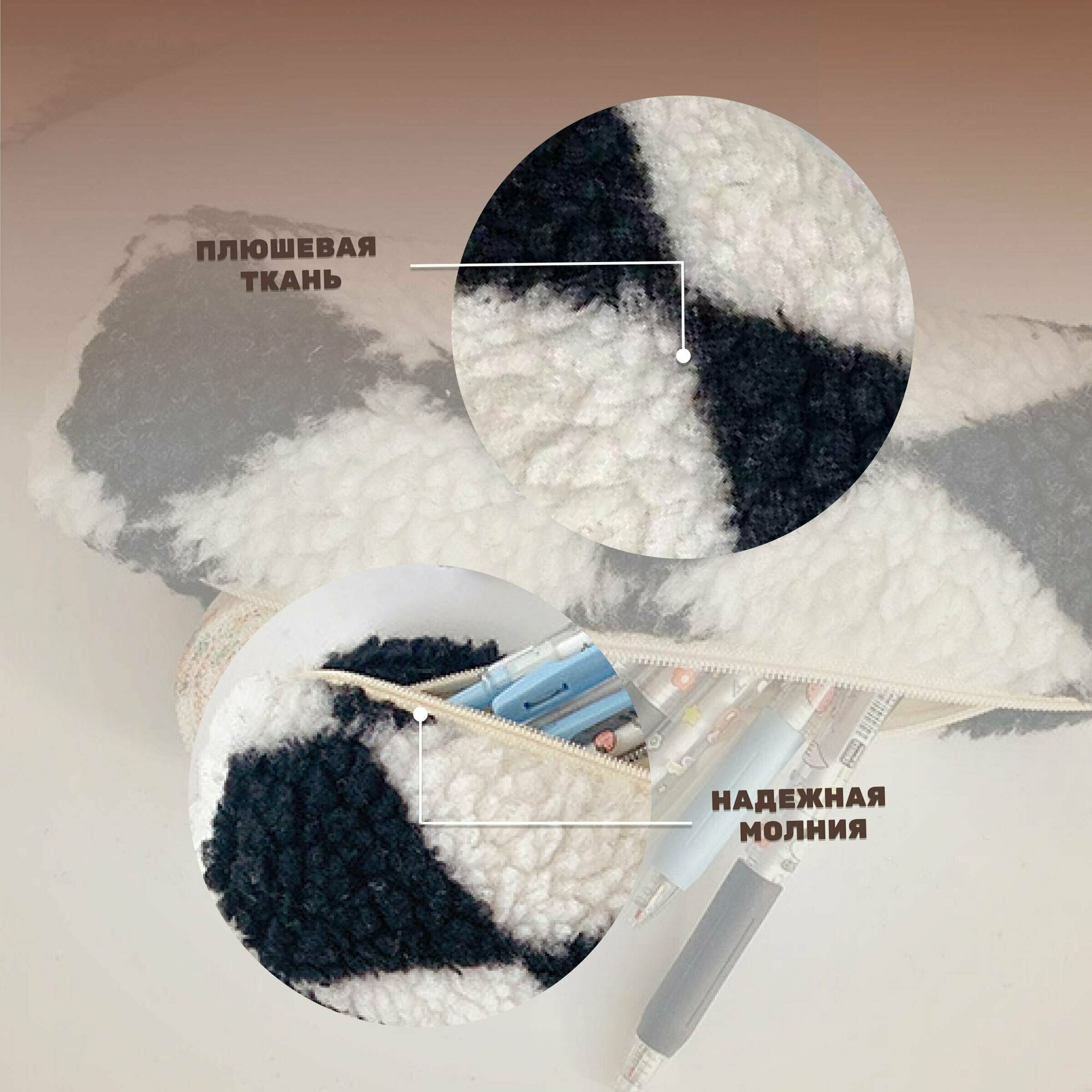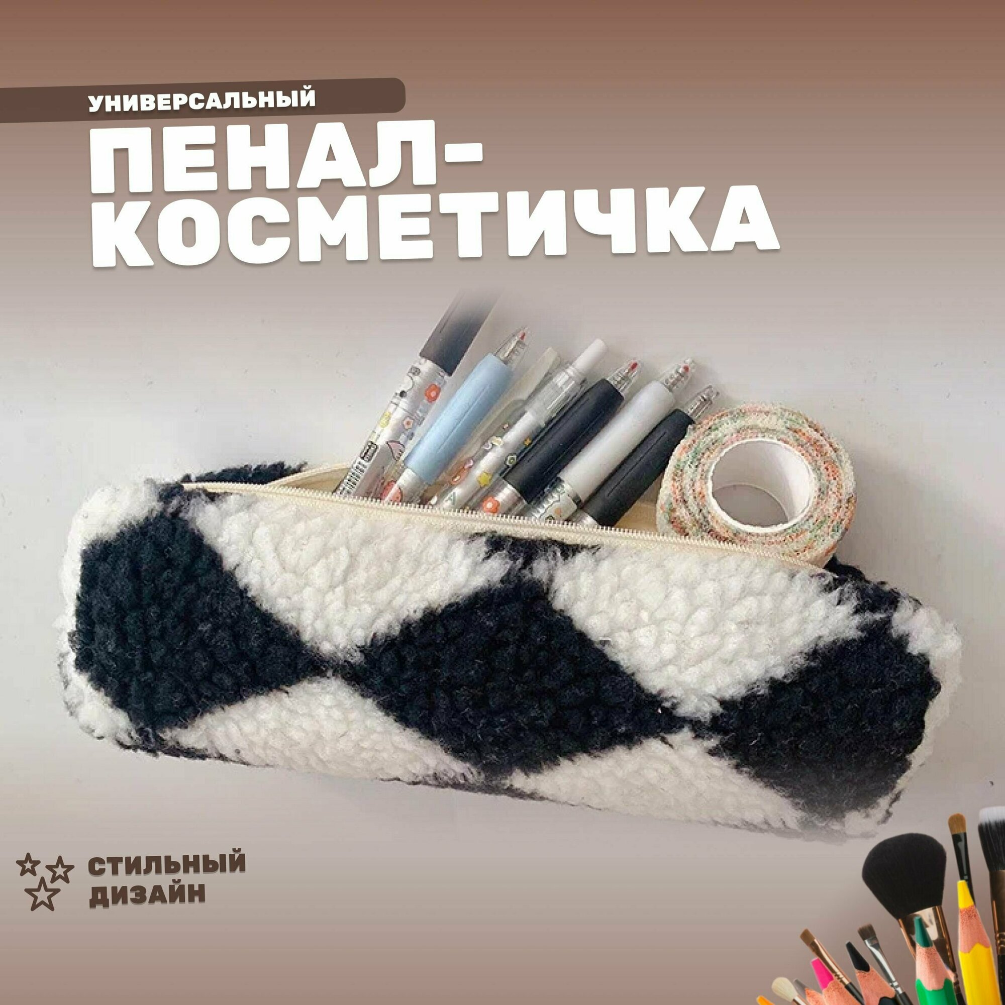 Отзывы на Пенал - косметичка плюшевый на молнии мягкий тканевый, рисунок черный ромб
