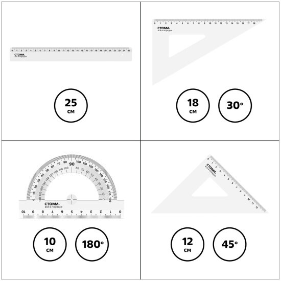 Отзывы на Набор чертежный Стамм , размер L (линейка 25см, 2 треугольника, транспортир), прозрачный, бесцветный, европодвес