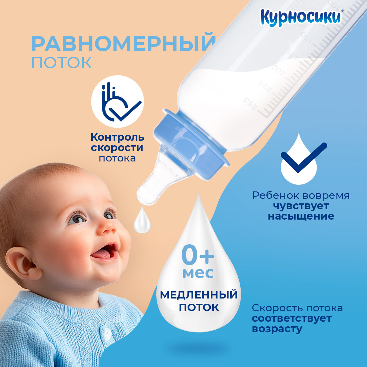 Бутылочка для кормления Курносики с силиконовой соской, 250 мл, от 0+ мес.