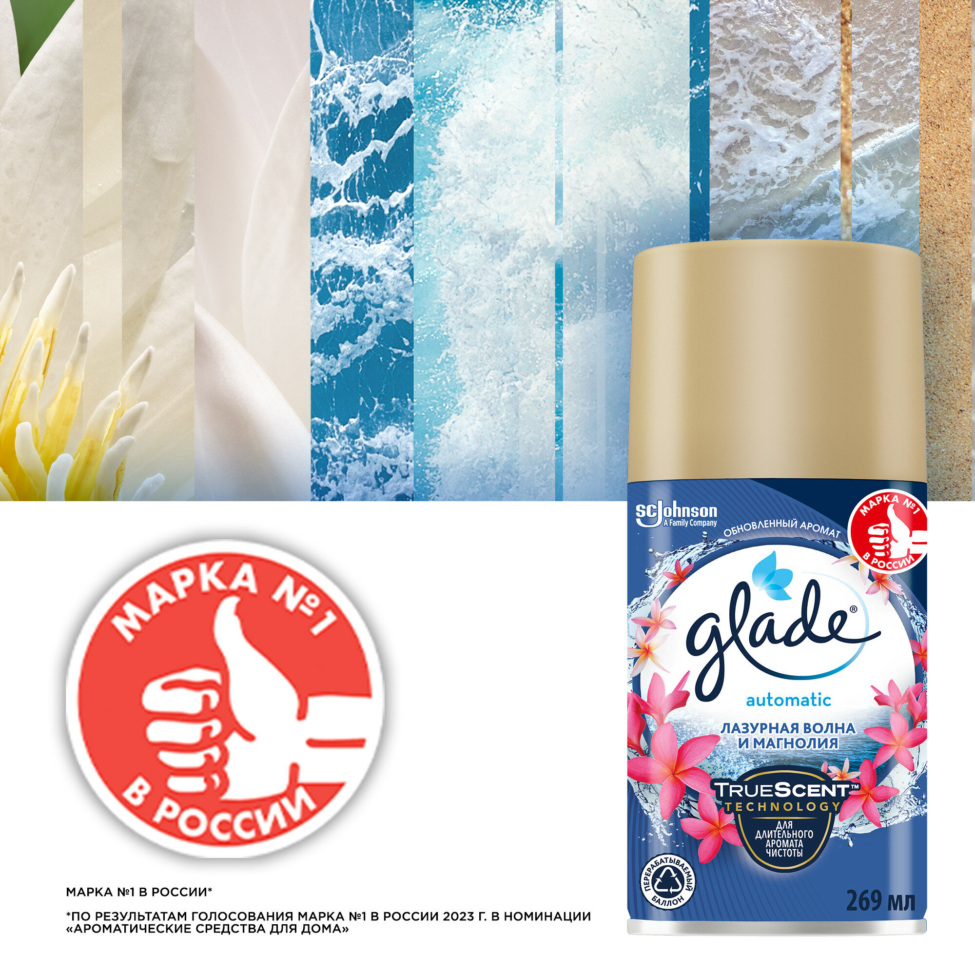 Glade Сменный баллон для автоматического освежителя Лазурная волна и магнолия, 269 мл информация: