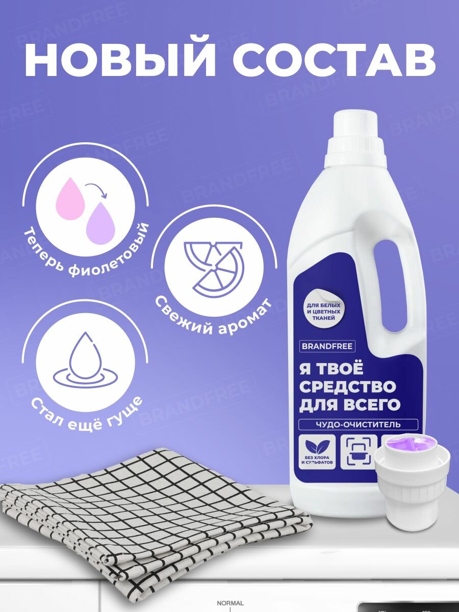 Универсальный гель-очиститель для стирки 2в1 «Я твое средство для всего» BRANDFREE для белых и цветных тканей, 1 л информация: