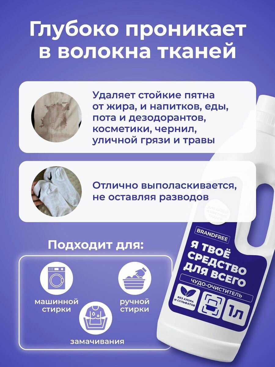 Отзывы на Универсальный гель-очиститель для стирки 2в1 «Я твое средство для всего» BRANDFREE для белых и цветных тканей, 1 л