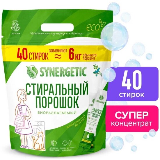 Стиральный порошок Synergetic в стиках, концентрат, биоразлагаемый, гипоаллергенный, 40 стиков *25 г информация: