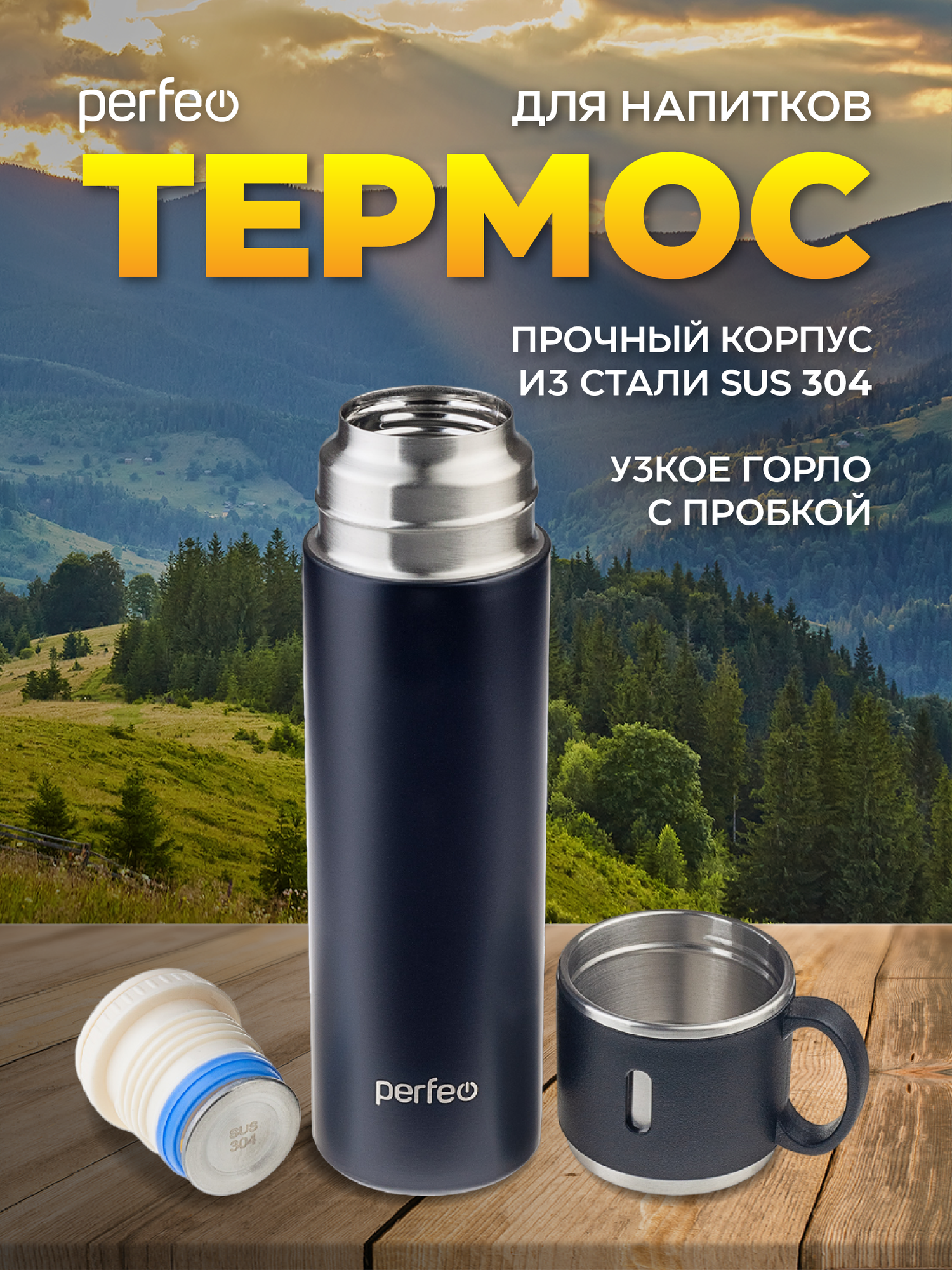 Термос PERFEO для напитков с пробкой-кнопкой, объем 0,75 л, нержавеющая сталь (PF_C3712) 851 ₽