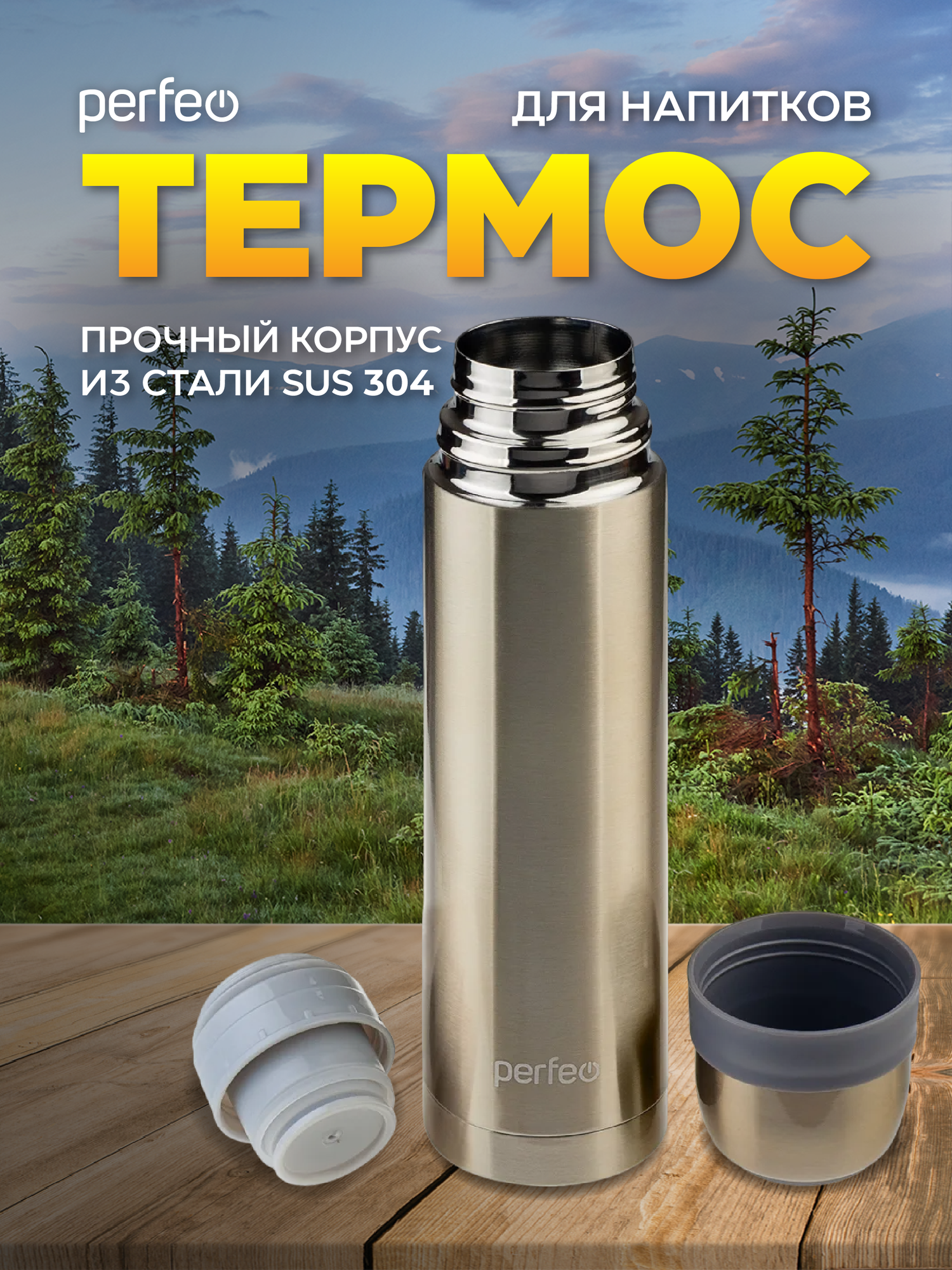Термос PERFEO для напитков с пробкой-кнопкой, объем 0,75 л, нержавеющая сталь (PF_C3712) 851 ₽