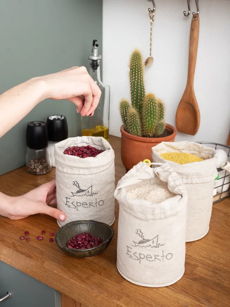 Комплект мешочков / емкостей для хранения продуктов (орехов, крупы, сахара...), 3 шт., размер S