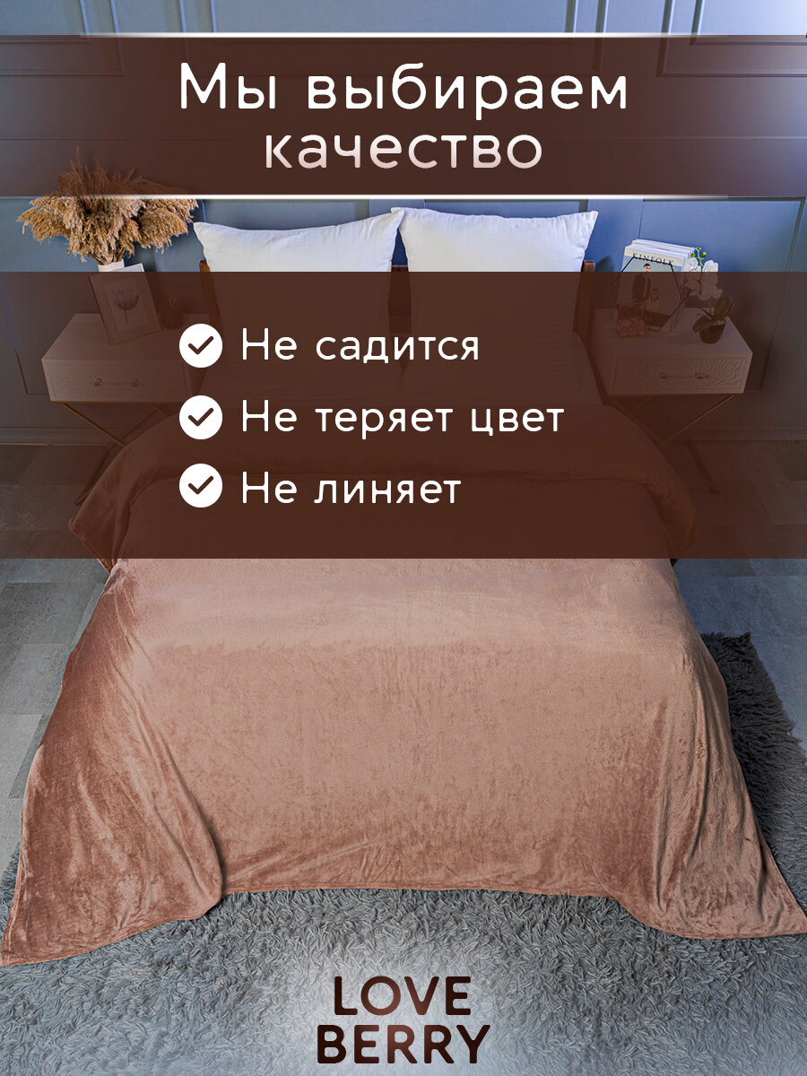 Плед 200х220 LOVEBERRY из велсофта Евро в спальню однотонный, какао, подарок маме информация: